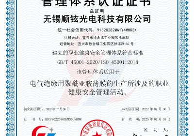 無錫順鉉光電職業(yè)健康安全管理體系認證證書(S)